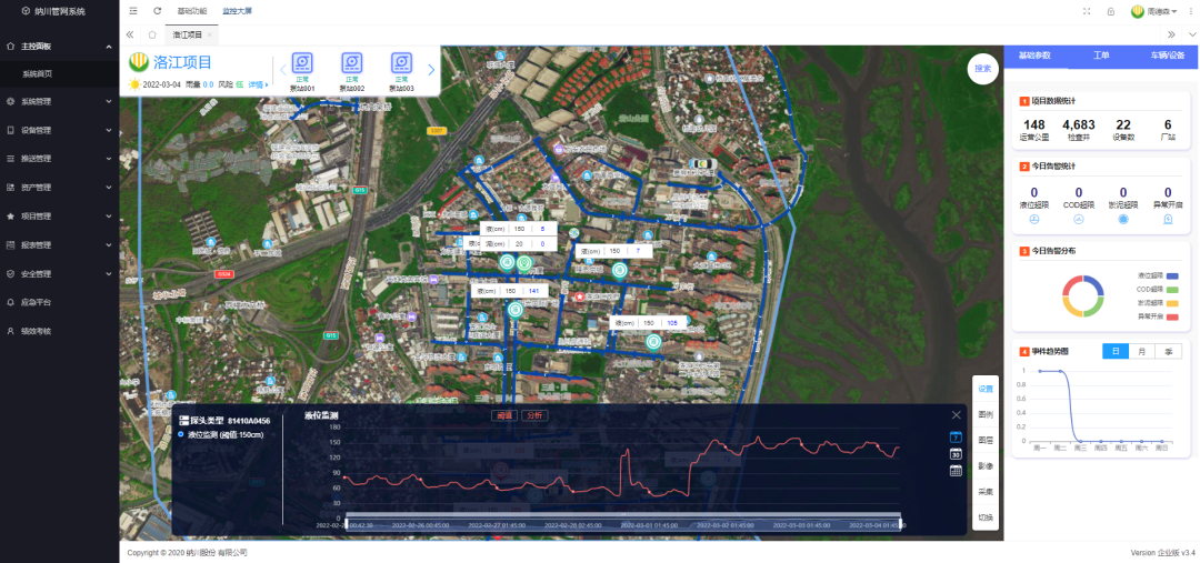 4月1日,纳川智慧水务平台正式上线。平台是以便捷、高效、安全和服务为导向,结合纳川公司多年积累下的扎实、丰富的管网运营经验,整合物联网、大数据、云平台等前沿技术,不断完善管网监测体系的功能以及应用,坚持“好用、实用、管用”的原则,建设的一个具备“事前预警”、“事中处置”、“事后总结”的城市排水管网运营监控系统,可以为客户提供优质的管网运营服务。